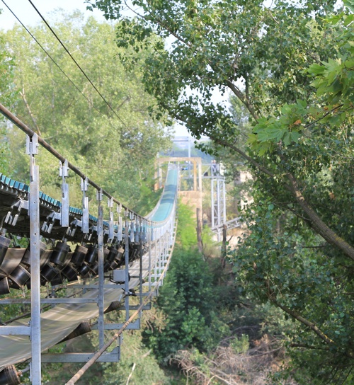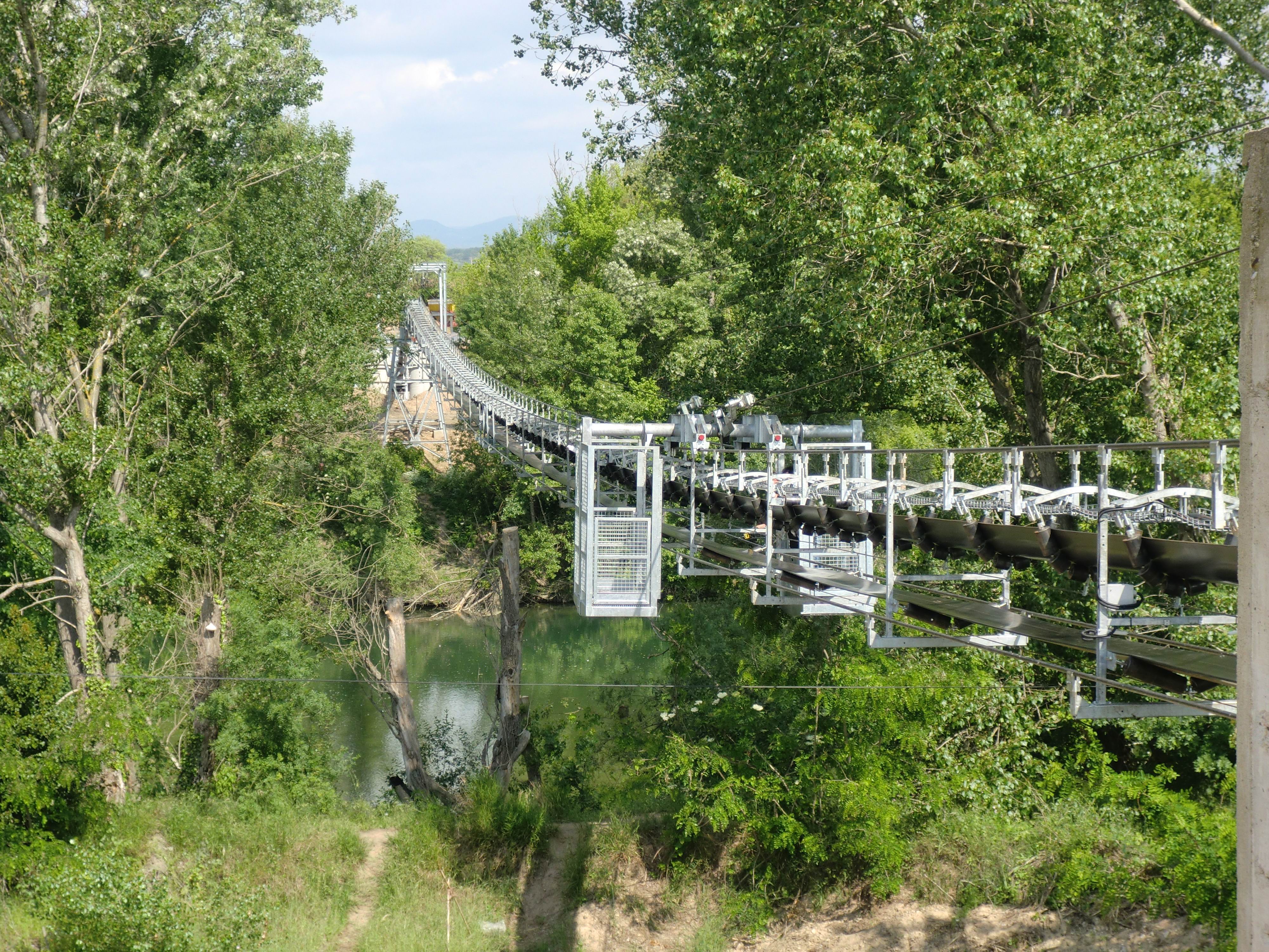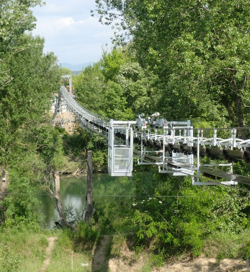 El FlyingBelt se utiliza para transportar agregados desde una nueva cantera a la instalación de tratamiento y almacenaje, sobrevolando el río Herault. Este sistema respeta las normativas locales que imponen un impacto ambiental mínimo. Una de las principales ventajas de este FlyingBelt es la posibilidad de conectar directamente los dos lados del río con un trayecto de sólo 215 metros en vez de un recorrido de 10 km por carretera.