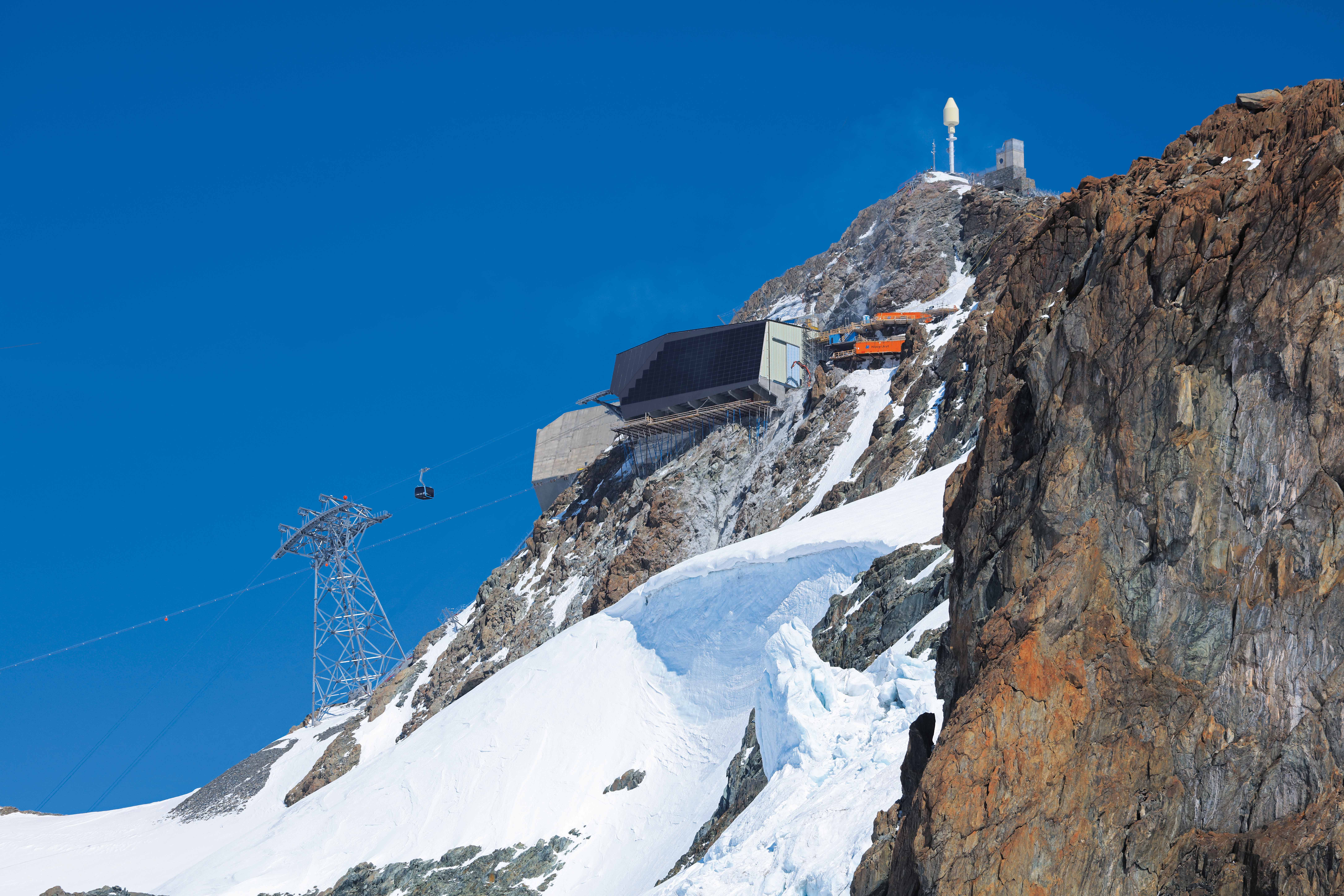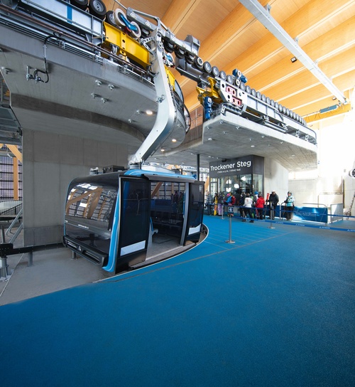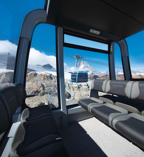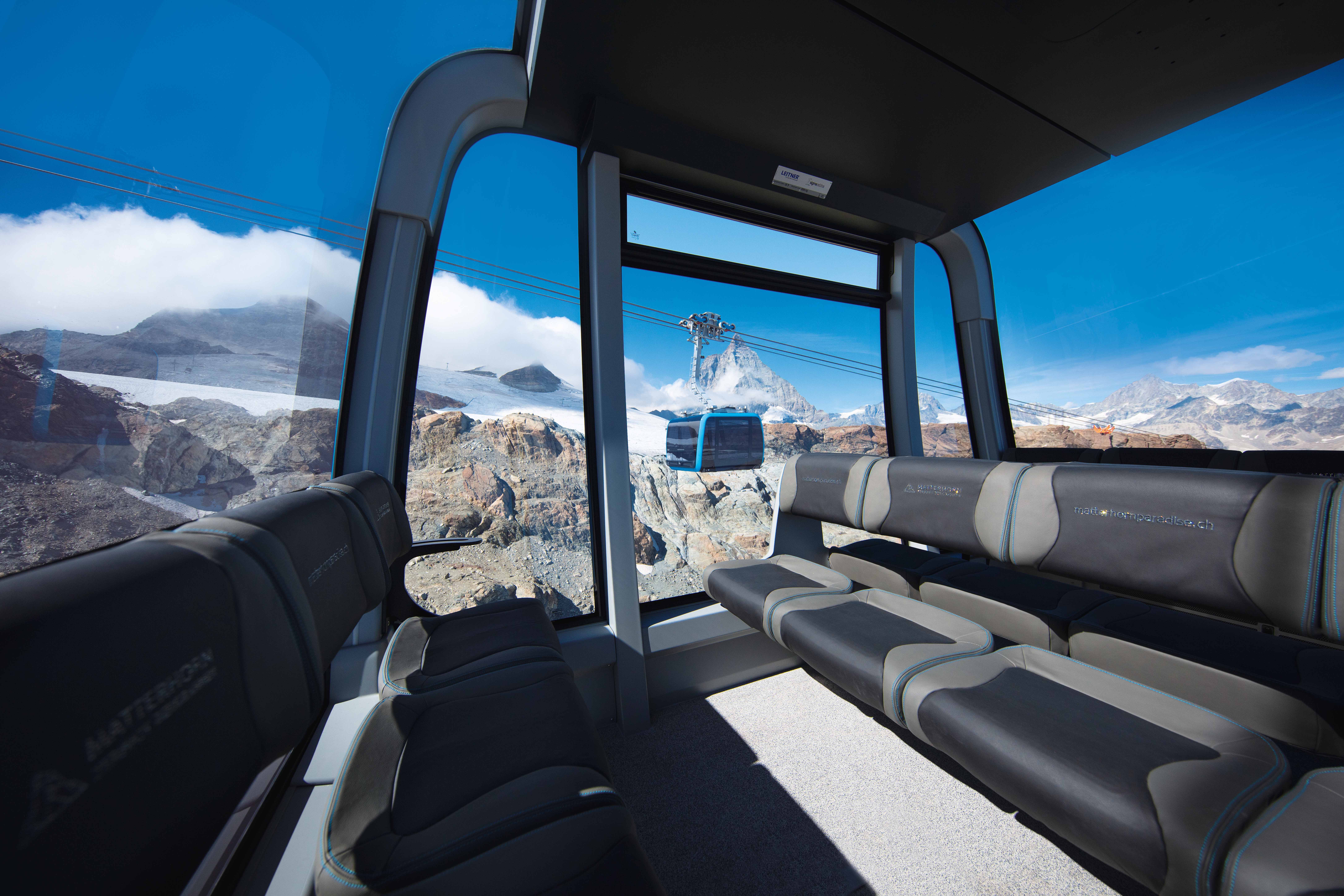 Con la inauguración de la telecabina 3S más alta del mundo en Klein Matterhorn el 29 de septiembre de 2018, varios hechos que batieron récords ahora se han reunido en un solo proyecto. El viaje de cuatro kilómetros hasta casi 4.000 metros sobre el nivel del mar conduce a la estación superior más alta de Europa. El cable de transporte de ocho kilómetros de largo pesa unas impresionantes 67 toneladas y está suspendido libremente a una distancia de tres kilómetros en el tramo más largo del sistema. Por primera vez en la historia de LEITNER, miles de cuentas de cristal Swarovski® refinan el exterior de cuatro de las 25 cabinas diseñadas por Pininfarina y también decoran las letras de los cómodos asientos. Gracias a otra característica técnica, estas cabinas ofrecen una vista espectacular durante el viaje de nueve minutos: después de tres minutos, a una altitud de 170 metros sobre el suelo, el suelo de vidrio nublado se aclara en segundos para brindar a los huéspedes una vista magnífica del paisaje glaciar de debajo.