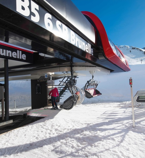 Voici quelques-uns des points forts du nouveau télésiège 6 places Brunelle : il propose des sièges chauffants avec bulle de protection contre les intempéries et des assises habillées de cuir véritable. Le voyage est aussi plus rapide, avec un temps de trajet divisé par 2, soit 4 minutes au lieu de 8. La technologie de pointe du DirectDrive LEITNER garantit, outre les économies d’énergie et une maintenance plus efficace, un moindre niveau de nuisance sonore. Autre point fort, le système d’amortissement latéral qui limite la réaction au vent au minimum absolu des sièges Premium du Brunelle.