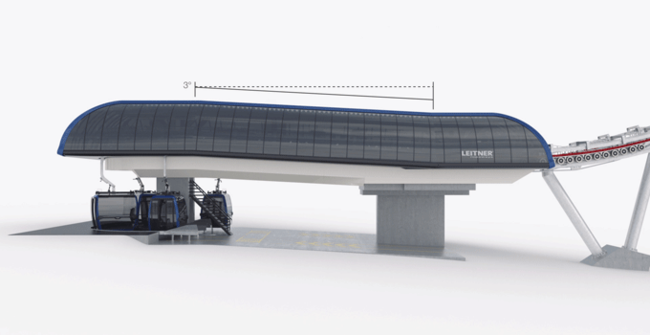 Anche le nuove stazioni sono il risultato della felice sintesi tra tecnologia monofune e trifune: verranno infatti realizzate con una inclinazione di tre gradi in modo da sfruttare in maniera ottimale la componente della forza motrice gravitazionale, il che si traduce in un minor consumo di energia in fase di accelerazione e decelerazione del veicolo e, di conseguenza, in una riduzione dello spazio necessario e quindi delle dimensioni delle stazioni stesse. Dalla tecnologia degli impianti monofune, ormai sperimentata e comprovata da anni, LEITNER ropeways ha derivato non solo i nuovi meccanismi di accelerazione e decelerazione della tecnologia 2S, ma anche il sistema di deviazione della fune traente e le unità di azionamento e di rinvio.