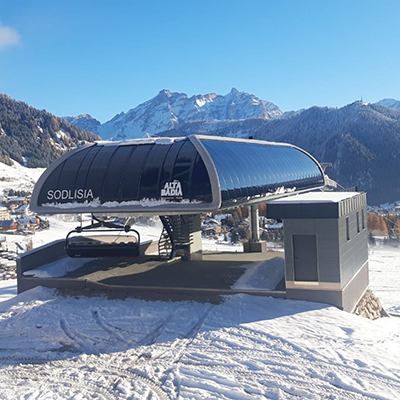In Kolfuschg im Südtiroler Gadertal wird eine modern ausgestattete 8er-Sesselbahn einen bereits 30 Jahre alten 4er-Sessellift ersetzen. Die mit DirectDrive betriebene Bahn „Sodlisia“ verfügt über verriegelbare Schließbügel, Premiumpolsterung sowie Schutzhauben und wird den Beförderungskomfort im zur Sellarunde zählenden Skigebiet deutlich erhöhen. Während am Berg eine neue Premium Station im Design von Pininfarina errichtet wird, wird die Anlage im Tal in ein neu errichtetes Gebäude samt unterirdischer Garagierung integriert.