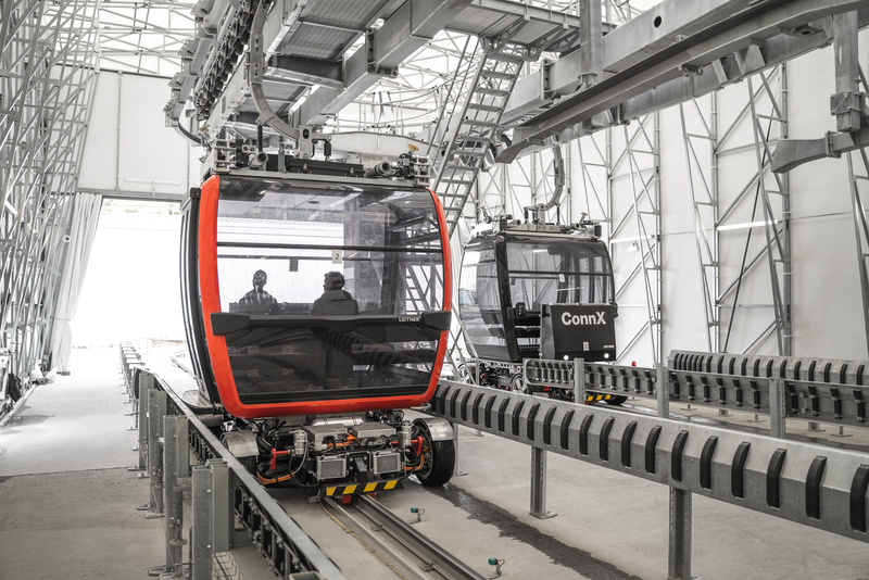 Die Weiterentwicklung von ConnX, der neuen „Hybrid-Lösung“ aus Seilbahn und selbstfahrenden Fahrzeugen, schreitet mit großen Schritten voran. Gemeinsam mit den slowenischen Experten von Elaphe testet LEITNER die innovative Mobilitätslösung derzeit intensiv im Test-Lab in Sterzing. Die Fortschritte stimmen positiv und unterstützen das ambitionierte Ziel, das patentierte System als Zukunftsmodell für den urbanen Verkehr in den kommenden zwei Jahren marktreif zu machen.