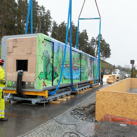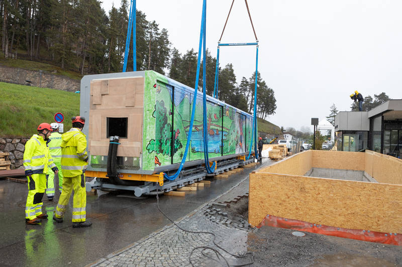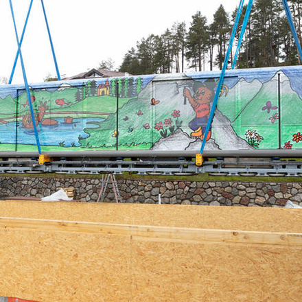 Die Bauarbeiten starteten 2017, als die Stationen „Parkplatz“ und „Seilbahn“ modernisiert und die Station „Kirche“ komplett neu gebaut wurden. 2018 erfolgte dann der Umbau der Station „Zentrum“ sowie die Umrüstung der Elektrotechnik. Am 20. Mai 2019 wurde das Fahrzeug, welches aus einem dreiteiligen Wagenzug samt Durchgangsmöglichkeit besteht, angeliefert. Die Gestaltung der neuen Dorfbahn wurde im Rahmen eines Malwettbewerbs ausgeschrieben.