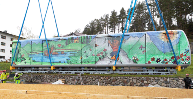 Was bereits vor über 30 Jahren noch in jeder Hinsicht revolutionär und beispiellos war, gilt auch heute noch als visionäres Konzept mit hoher Alltagstauglichkeit. Entlang der vier Stationen „Parkplatz“, „Kirche“, „Zentrum“ und „Seilbahn“ gelangen die Fahrgäste mit der Luftkissenschwebebahn auf einer Strecke von 1.280 Metern zu allen wichtigen Standorten im Dorf. 2016 erfolgte die Entscheidung, die Dorfbahn umfassend zu modernisieren, wobei LEITNER ropeways die gesamten seilbahntechnischen Leistungen erbringt. Beim Tiroler Prestigeprojekt kommen gleich mehrere technologische Neuerungen von LEITNER ropeways zur Anwendung, die den Betrieb der Bahn noch effizienter, sicherer und nachhaltiger machen. Dazu zählt neben der neuesten Generation der Luftkissentechnologie auch die Premiere für den ersten mit stehender Treibscheibe installierten DirectDrive.