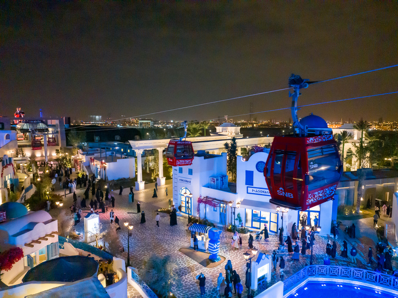 Um den bestmöglichen Transport durch das nunmehr 900.000 Quadratmeter große Boulevard-Areal zu garantierten, entschied sich das Betreiberunternehmen Sela für den Bau einer Seilbahn. Die Anlage startet beim Parkplatz nördlich von Boulevard Riad City, überfliegt eine breite Straße und führt anschließend in die Boulevard World, wo die Seilbahnstation in die eindrucksvolle griechische Landschaft von Santorini eingebettet wurde. Die 10er-Kabinenbahn führt über eine Strecke von 1,2 Kilometern und erreicht eine Beförderungskapazität von maximal 3.000 Personen pro Stunde. Die Seilbahn ist während des Festivals „Riyadh Season“, welches Ende Oktober eröffnet wurde, bis zum Frühling 2023 täglich vom späten Nachmittag bis Mitternacht in Betrieb.