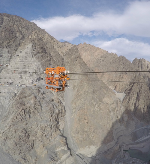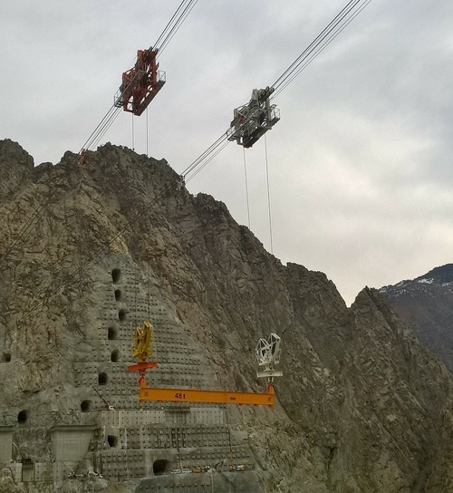 Die AGUDIO-Seilkräne zeichnen sich durch eine bis heute unerreichte Performance und Verlässlichkeit aus: eine Tragkraft von 28 t (wird durch die Synchronisation der Bewegungen zweier Maschinen auf 48 t erhöht), vor allem aber die 300 m Absenklänge des Hakens.