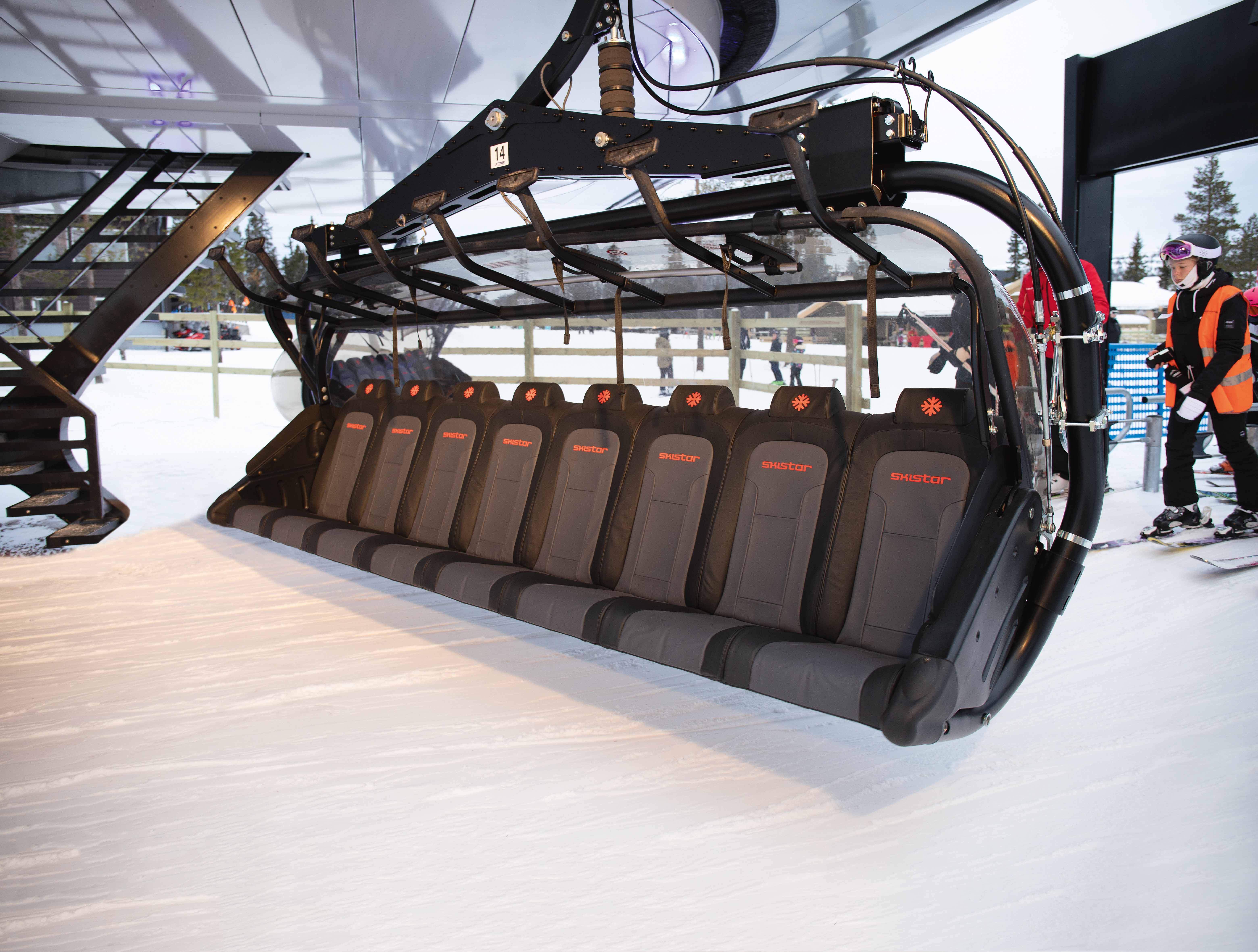 LEITNER ropeways errichtete in Hundfjället eine neue 8er-Sesselbahn, die Gäste anstelle eines Schlepplifts direkt auf den Gipfel des Långbackarna und damit zugleich in das Herzstück im Westen des Familienskigebiets befördert. In diesem befindet sich der Eintritt zu vielen Skipisten in unterschiedlichen Schwierigkeitsgraden. Mit der neuen Sesselbahn ist dieser Bereich des Skigebiets jetzt noch schneller, moderner und attraktiver zu erreichen. Ausgestattet mit Wetterschutzhauben, Sitzheizung, LEITNER DirectDrive und Premium Chairs wurde die Anlage auch erstmals in Skandinavien mit den neuen Stationen im Pininfarina Design ausgeführt.