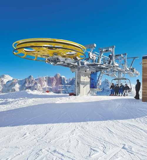 Im Skigebiet von San Martino di Castrozza führte LEITNER mit dem Bau der neuen Sesselbahn CF4 „Cima Tognola“ eine langjährige und erfolgreiche Zusammenarbeit fort. Die Talstation der neuen Anlage wurde im Vergleich zu ihrer „zweisitzigen“ Vorgängerin etwas nach oben verlegt und ermöglicht damit einen raschen Anschluss von der 6er-Sesselbahn Cigolera. Das italienische Skigebiet, das eingebettet in die wunderschöne Dolomitenlandschaft unvergleichliche Blicke auf die Palagruppe verspricht, bietet auf 60 km Pisten für Anfänger und Fortgeschrittene.
