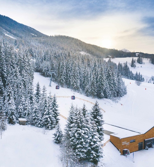 Die mit LEITNER DirectDrive ausgestattete GD10 „Galsterbergbahn“ ersetzt eine über 30 Jahre alte Gruppenumlaufbahn und schafft damit einen markanten Mehrwert für die Wintersportlerinnen und Wintersportler der Region Schladming-Dachstein. Die geräumigen Diamond EVO Kabinen in der Ausführung „XL Deep“ sorgen mit gepolsterten Einzelsitzen und viel Beinfreiheit für höchsten Fahrgastkomfort. Zudem schaffen die großzügigen Glasfronten einen 360° Panoramablick auf die umliegende Bergwelt. Besonderen Wert legten die Betreiber auf die harmonisch an die Umgebung angepasste Umsetzung der Stationsgebäude, die – stimmig zur Bautradition in der Region – in der typischen „Schindel-Optik“ umgesetzt wurden. Durch den Neubau der Hauptseilbahn erfährt insbesondere auch die kinderfreundliche und attraktive Talabfahrt, welche bereits im letzten Jahr im oberen Bereich verbreitert wurde, eine enorme Aufwertung und sorgt für eine optimale Gästeverteilung am Berg.