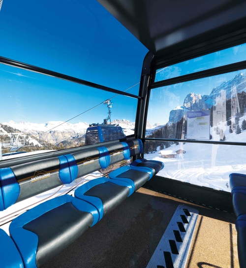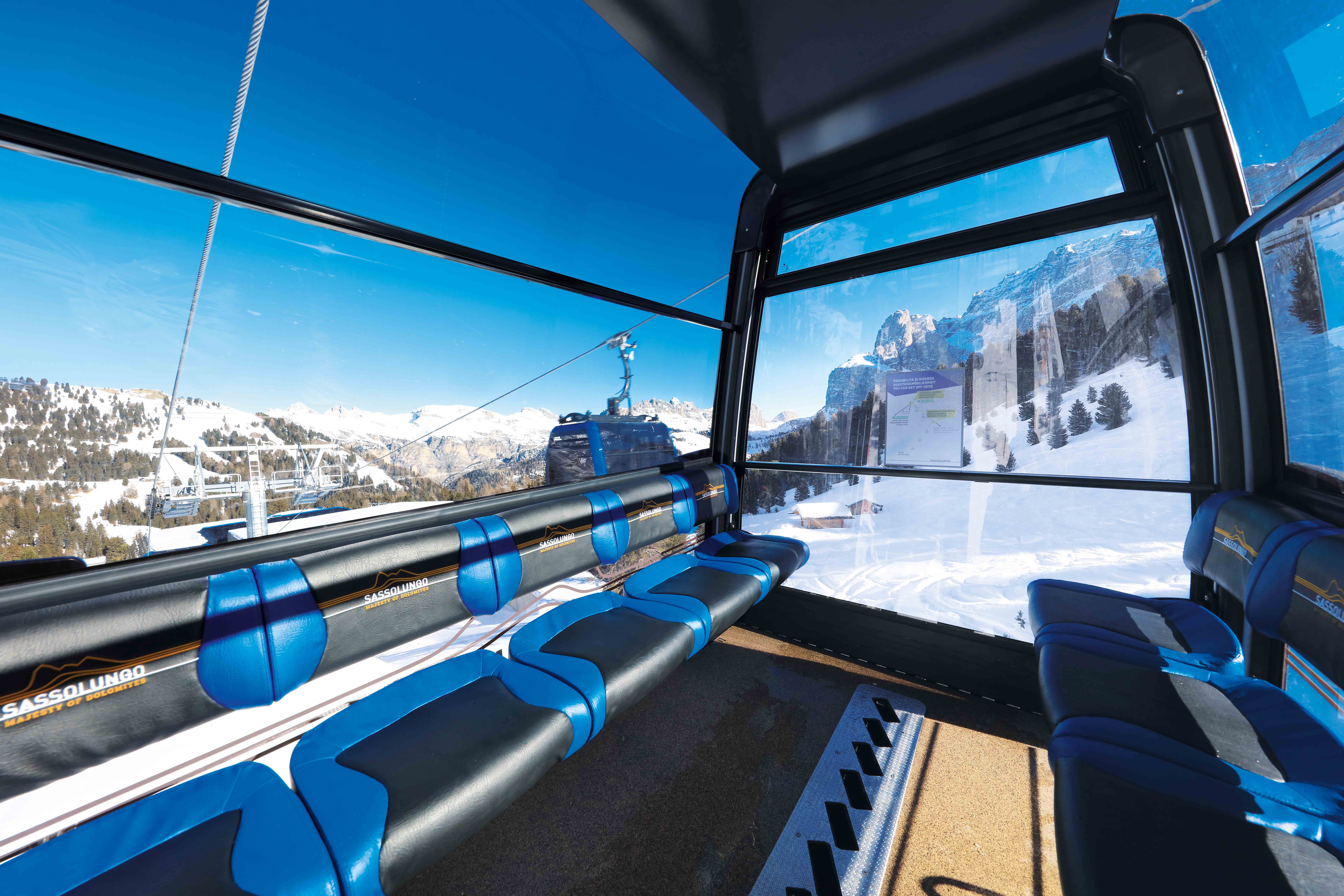 LEITNER ropeways hat am Fuße des Langkofels eines der größten Highlights der Wintersaison 2017/2018 umgesetzt: Die neue Kabinenbahn Piz Seteur besteht aus zwei Sektionen und setzt neue Standards in Komfort, Sicherheit und Leistung. Die Symphony 10 Kabine, die ihre Weltpremiere in Gröden feierte, bietet den Passagieren deutlich mehr Platz und einen größeren Einstiegsbereich. Dazu kommt das unverwechselbare Design von Pininfarina. Die auf 65 Sekunden verlängerte Stationsdurchfahrt mit sechs geöffneten Kabinen bietet den Wintersportlern mehr Zeit für ein sicheres und stressfreies Ein- und Aussteigen. Außerdem stammt auch das Design der neuen Mittelstation von Pininfarina. Die Mittelstation bringt durch das perfekte Zusammenspiel von modernstem Design aus dem Hause Pininfarina und durchdachter Konstruktion deutliche Vorteile und natürlich einen erhöhten Passagierkomfort.