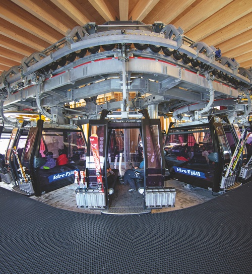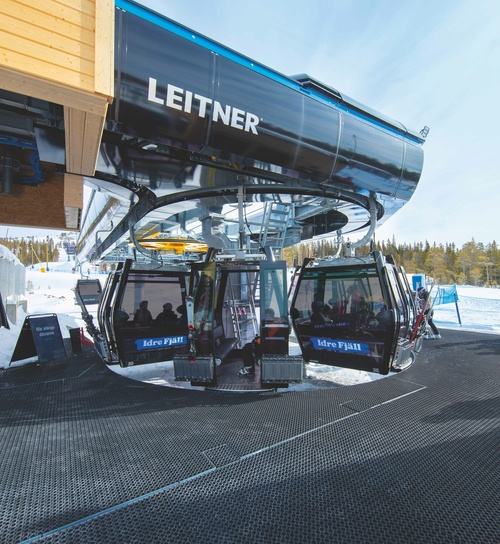 Mit der Fertigstellung der neuen 10er-Kabinenbahn GD10 „Sydgondolen I+II“ sorgt LEITNER für eine echte Aufwertung des Skigebiets Idre Fjäll. Nachdem auch in Schweden auf Nachhaltigkeit gesetzt wird, ist die über zwei Sektionen führende Anlage natürlich mit dem LEITNER DirectDrive ausgestattet. Um die Pisten im unteren Areal auch bei starkem Wind im oberen Bereich nutzen zu können, verfügt die Bahn über die Möglichkeit den unteren Sektor autonom zu betreiben. Insgesamt kommen 80 Kabinen zum Einsatz, die eine Förderleistung von bis zu 3.000 Personen pro Stunde ermöglichen. Durch den geplanten ganzjährigen Betrieb bietet die Bahn im Sommer auch die Möglichkeit des Biketransportes. In der Wintersaison freuen sich die Gäste des beliebten Feriengebietes über die Entstehung von 2 neuen Abfahrten rund um die neue Kabinenbahn.