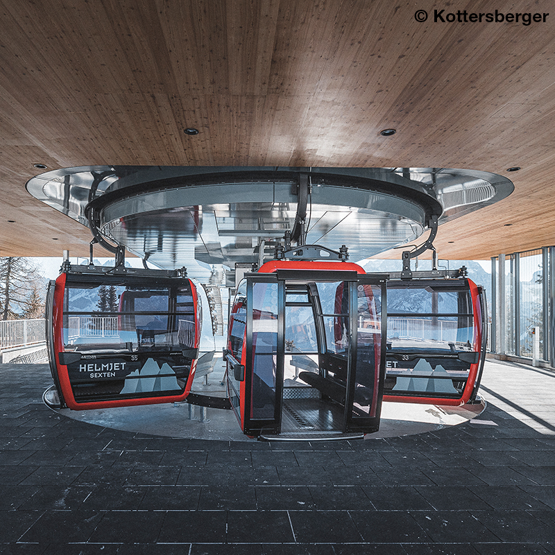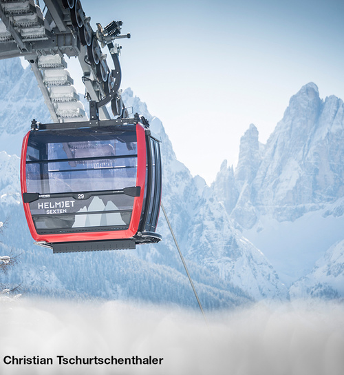 Nach 40 Jahren Betriebszeit inmitten der Südtiroler Dolomiten zwischen Sexten und dem Skiberg Helm hat die Pendelbahn dort ausgedient. Im Herbst 2020 machte sie Platz für die neue Kabinenbahn „Helmjet“. Der Helm ist ein beliebtes Ausflugsziel für Familien und Wanderer und bietet im Winter Pistenvergnügen auf 2.050 m Höhe. Mit dem „Helmjet“ gelangen die Fahrgäste in nur knapp sechs Minuten zum Helm. Die neue Bahn bietet deutlich mehr Komfort und die Hektik und langen Wartezeiten in den Stationen gehören nun dank deutlich höherer Förderleistung der Vergangenheit an. Ein wichtiger Teil der Investitionen der vergangenen Jahre waren und sind die Seilbahnen. So ist dies nun die sechste Anlage innerhalb von sechs Jahren, die LEITNER in diesem Skigebiet realisieren konnte. Besonders elegante 58 Luxus Kabinen Symphony 10, ausgestattet mit Sitzbänken samt Lodenpolsterung und Skiträgern im Innenbereich, sorgen für ein angenehmes Fahrerlebnis. Als Antrieb kommt bei der 10erKabinenbahn ein besonders leistungsstarker LEITNER DirectDrive zum Einsatz.