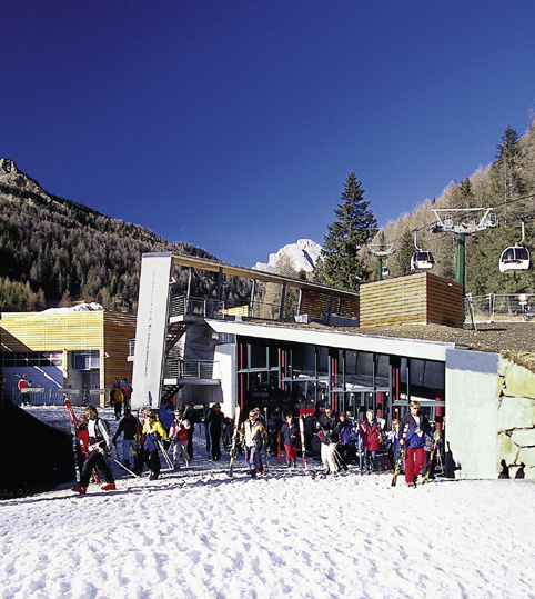 Das wohl bekannteste Ski-Karussell der Dolomiten, die Sella-Runde, ist seit 2004 komplett. Dann nämlich wurde die neue, unterirdische Standseilbahn eröffnet und das letzte offene Teilstück der Runde geschlossen und der Zieleinlauf der Sasslong-Piste wurde mit der Talstation der Kabinenbahn Col Raiser verbunden.