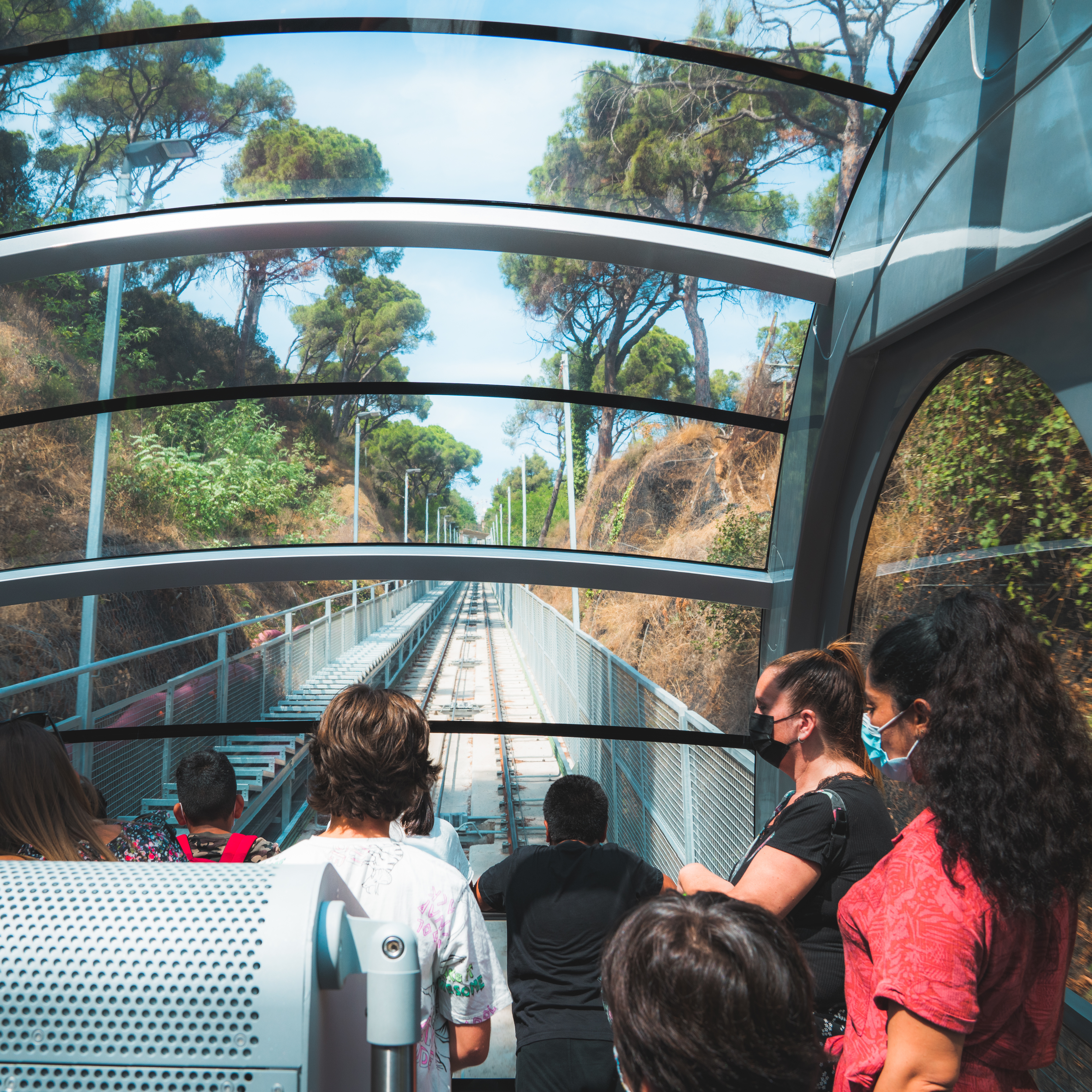 Bei der Bahn auf den 512 Meter hohen Tibidabo in Barcelona wurde im Zuge eines umfassenden Revitalisierungsprogramms ein völlig neues Kapitel aufgeschlagen. LEITNER war für die Erneuerung der Bahnsteuerung, die Lieferung der zwei Wägen sowie die Einrichtung der Seilrollen und Schienen, Stationseinrichtungen und der automatischen Bahnsteigtüren verantwortlich. Die Geschwindigkeit erhöht sich von vier auf zehn Meter pro Sekunde, die Beförderungskapazität von 120 auf 252 Personen pro Fahrt. Neben der Vielzahl an technischen Neuerungen und der Integration eines neuen Sicherheitssystems lag der Fokus auf der Gestaltung der Bahn. So schafft die Erneuerung des Designs mehr Fläche in den Kabinen, einen verbesserten Panoramablick und mehr Komfort. Neben einer spürbaren Lärm- und Schwingungsreduktion tragen Klimaanlagen, ein barrierefreier Einstieg und ergonomisch geformte Sitze zur entspannten Bahnfahrt bei. Letztere wurden in einer semi-transparenten Ausführung erstellt und lassen den Raum durch diesen Effekt noch größer erscheinen. Weithin sichtbar ist die Bahn aufgrund der markanten Außenbeleuchtung in futuristischem Styling vor allem in der Dunkelheit.